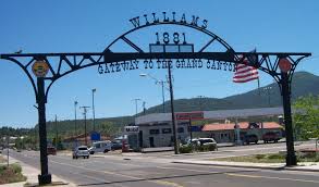 Es en ese punto cuando vemos los primeros carteles de la mítica ruta 66 - me acuerdo de Cars, no puedo evitarlo-. Desde aquí observamos como la carretera pica hacia arriba y cambia el entorno ligeramente. Todavía nos quedan 97 millas a Seligman, alguna más a Ash Fork y tras un rato llegaríamos a nuestro destino. Empieza a aparecer arbolado y algunas aves y bastante ganado nos dice que el desierto va quedando atrás. Algunos arroyos como el Big Sandy hacen que pasemos sobre algún viaducto interesante. Pero todavía queda un trecho. Desde Ash Fork hasta Williams aparecen grandes pinares. Willians queda a nuestra izquierda y un enorme arco da la bienvenida a esta curiosa ciudad motera y del oeste. Son las 18:00 y hemos llegamo a Williams, en plena ruta 66.